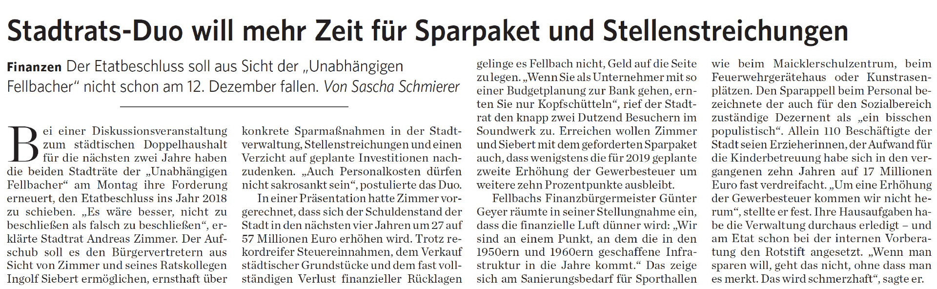 Die Fellbacher Zeitung hat über die Diskussionsveranstaltung wie folgt berichtet (Bild des Presseartikels unten anklicken):